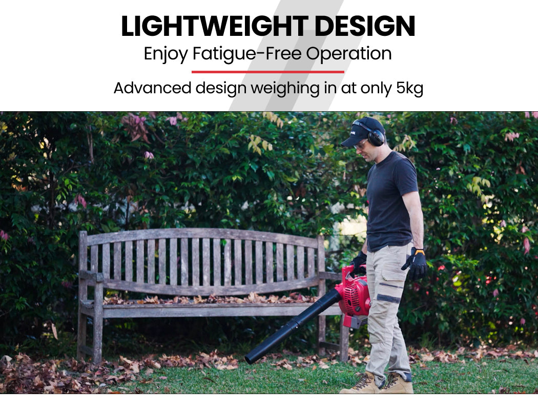 Powered by a quiet 4-stroke 25cc low-emissions engine, removing leaf litter and debris is now a breeze. Its ultra-light weight serves to minimize any arm fatigue, while still engineered specifically for great maneuverability and maximum output. The most outstanding attribute of this unit is its blower/vacuum combination function. You can now tidy up your lawn in the most efficient, time saving way by either blowing debri out of the way, or vacuuming it up for composting.