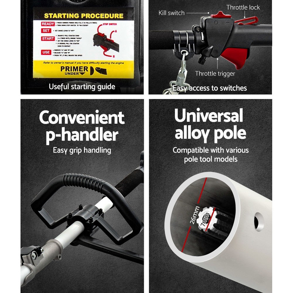 Giantz 40CC Pole Chainsaw Hedge Trimmer Brush Cutter Whipper Saw 4-Stroke 7-in-1