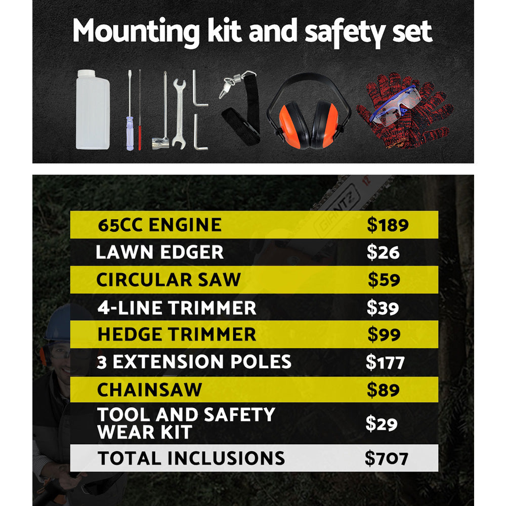 1 x GIANTZ 2 Stroke 65CC 7-IN-1 Pole Chainsaw